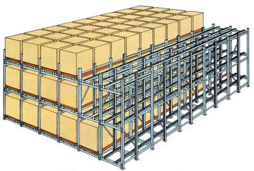 3、適用于以托盤為載體的存儲作業(yè),貨物堆棧整齊,為大件重物的存儲提供了較好的解決方案,倉儲空間利用率在75%以上,而且只需要一個進出貨通道;
