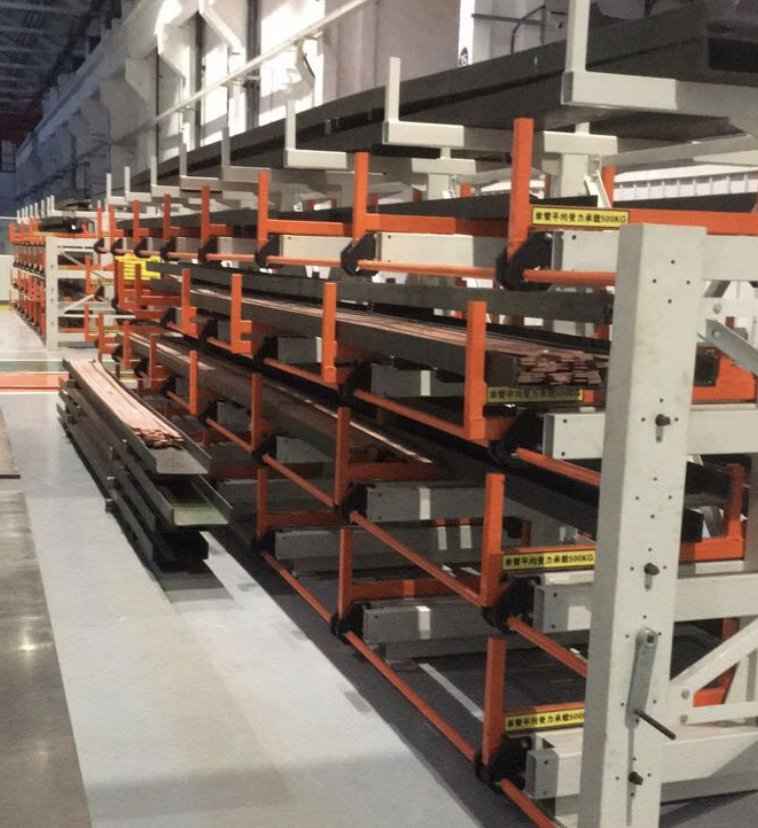 金屬管材存放貨架的伸縮移動式結構,特別為行車存放貨物而設計研發的,行車存放長貨物 管材 棒料 軸 桿 型材 鋼材等可以節省叉車及巷道還有轉彎時占用的空間,6米、12米的貨物要預留好幾米的空間但使用行車存放只要預留懸臂伸出的空間就可以了 如何能夠將凌亂的倉庫整理的更加整潔,存儲更便捷呢