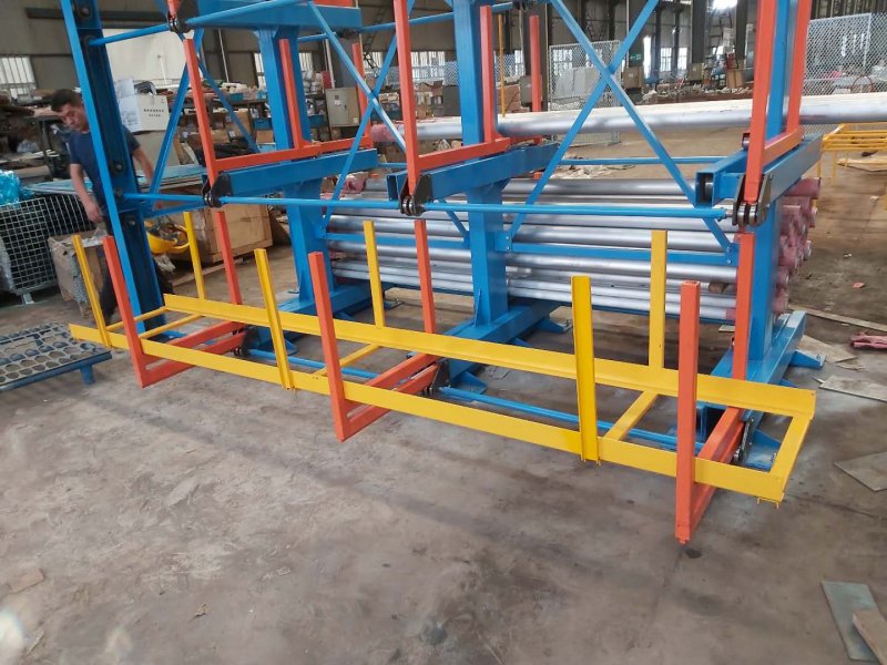 棒材存放的懸臂貨架的系統方案 伸縮懸臂式管材貨架是在懸臂式貨架的基礎上把固定懸臂升級為伸縮懸臂,這樣即使是6米、12米、17米的管材都可以使用行車直接存儲,伸縮懸臂每層的管材都能使用行車,行車也能到達想要存儲的管材面前,不用擔心中間和底層的管材擋著夠不到。 伸縮懸臂式貨架采用多層存放形式,以往不能碼放太高,容易倒塌,也擔心底層的管材腐蝕變形等情況的發生。現在使用伸縮式可以多層存放,管材也不接觸地面,不會腐蝕,每層獨立存取,上層的壓力不會帶給下層,也不用擔心變形。